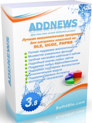 ![]() AddNews 3.8 - это уникальный многопоточный софт, который, предназначается для публикации новостей на развлекательные порталы на самых распространенных движках DLE Engine, ЮКОЗ и PHPBB. |