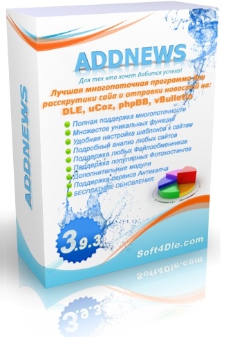 ![]() АддНевс, АддНьюс, AddNews 3.9.3 - это многопоточный программный продукт, который предназначается для публикации новостей на развлекательные порталы, сделанные на самых распространенных движках vBulletin, PHPBB, UCOZ и DLE. |