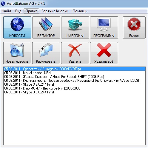 Бесплатно Скачать АвтоШаблон AG (AutoShablon AG) v. 2.7.1 - Программа для рассылки новостей (Crack, RUS, 2012)